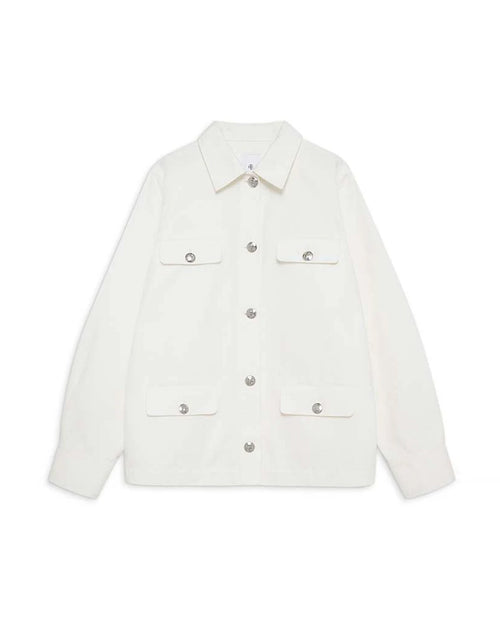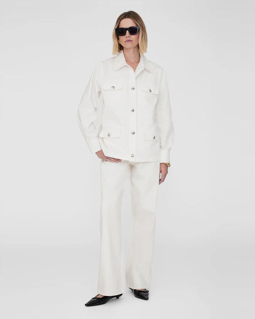 Relaxed fit jacket, made from a mid-weight cotton canvas. Featuring a single jacket collar, long sleeves with single buttoned cuffs, four front functional flap pockets with accented ANINE BING engraving gold buttons down the center-front placket.