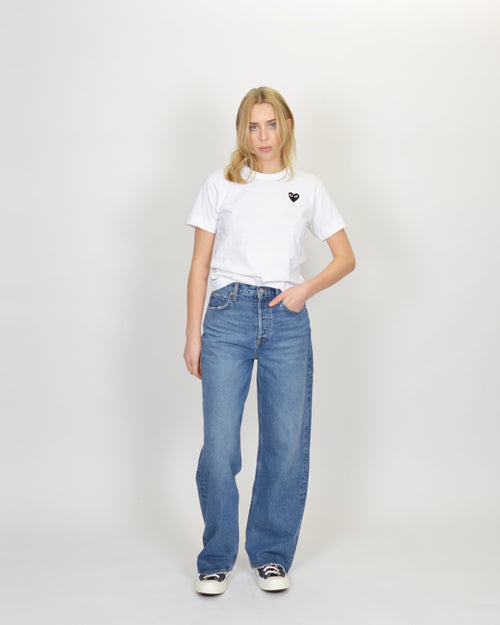 Classic fit t-shirt, cut from a cotton jersey. Featuring a crew neckline, short sleeves, straight hem, and embroidered black heart on chest. This is a unisex style.