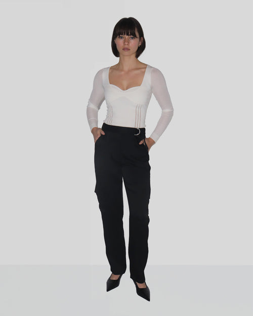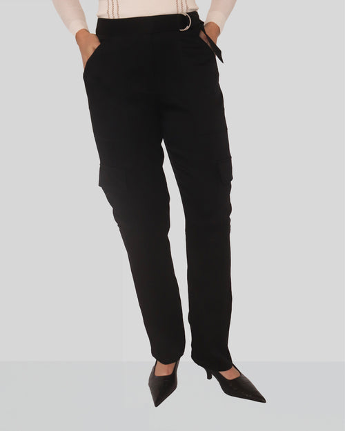 Straight leg utility trouser offering industrial construction details like cargo pockets, zipper ankles, and snap buttons - elevated by a silky satin fabrication to create an elegant yet accessible styling piece that transcends seasons. A Jonathan Simkhai signature.