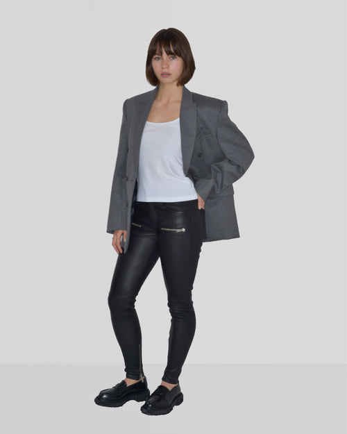 Undeniably 2000s-inspired, the Remy Pant is crafted from soft 100% leather with a slight stretch and matte finish. This mid-rise style features edgy details including functional zipper pockets in silver hardware and coordinating zipper detailing at each inner leg opening.