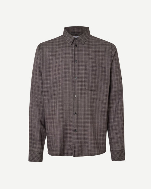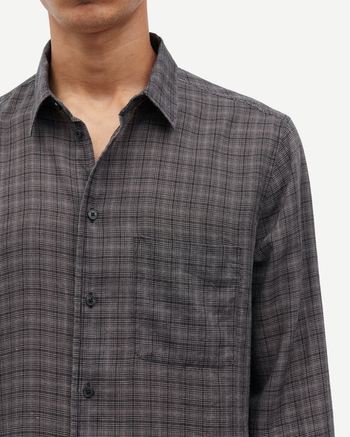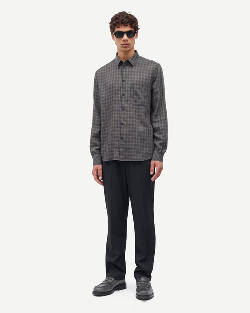 Regular fit shirt, made from tencel lyocell. Featuring a standard shirt collar, long sleeves with buttoned cuffs, front button up closure, single front patch pocket, neck yoke seam and finished hems.