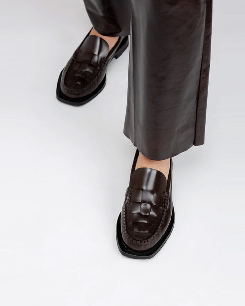 Slip-on loafer with interwoven front detail, crafted in full-grain calf leather and calf leather lining. Hand sewn using the traditional moccasin construction. The outsole is stitched to the upper for extra flexibility and durability. Made in Spain by uniquely talented artisans, with local materials, celebrating excellence in craftsmanship.